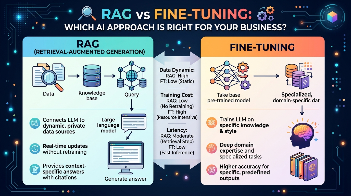 Two methods have emerged as the most powerful ways to close that gap: Retrieval-Augmented Generation (RAG) and fine-tuning. Both make AI smarter for your specific context. But they work very differently, cost very differently, and suit very different situations.